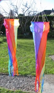 I make them in a silicon coated ripstop nylon, very U/V resistant, and they come with a ball bearing swivel! In Rainbow colours or what ever colour you would like me to make up